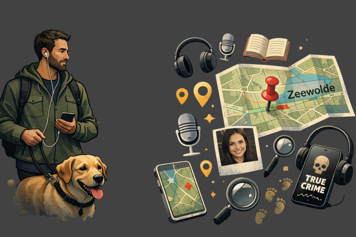 Naast podcasts luister ik namelijk ook graag naar audioboeken over true crime-verhalen uit eigen land. Ik duik het liefst helemaal in de details en zoek ondertussen via Google Maps de locaties op die genoemd worden. Zo krijg ik een nog completer beeld van wat en waar er zich precies heeft afgespeeld.